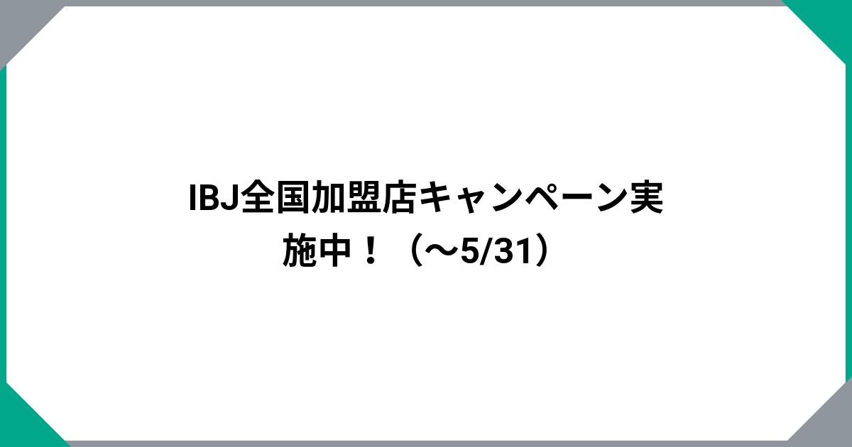 IBJ全国加盟店キャンペーン実施中!(~5/31)