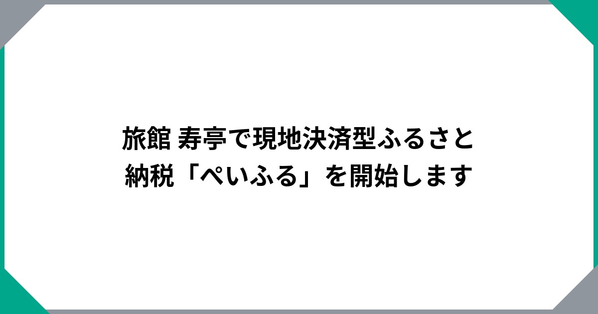 旅館 寿亭で現地決済型ふるさと納税「ぺいふる」を開始します