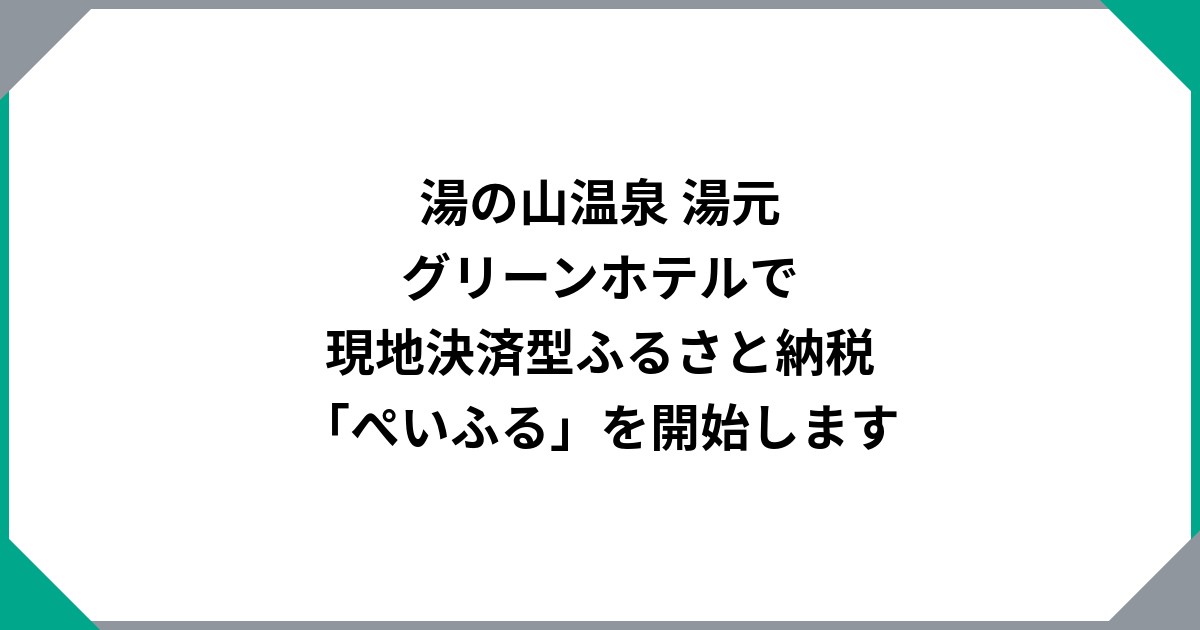 湯の山温泉 湯元 グリーンホテルで現地決済型ふるさと納税「ぺいふる」を開始します