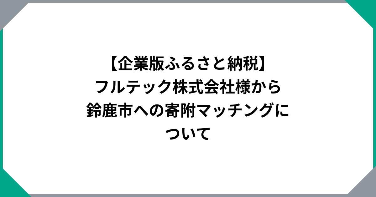 【企業版ふるさと納税】フルテック株式会社様から鈴鹿市への寄附マッチングについて