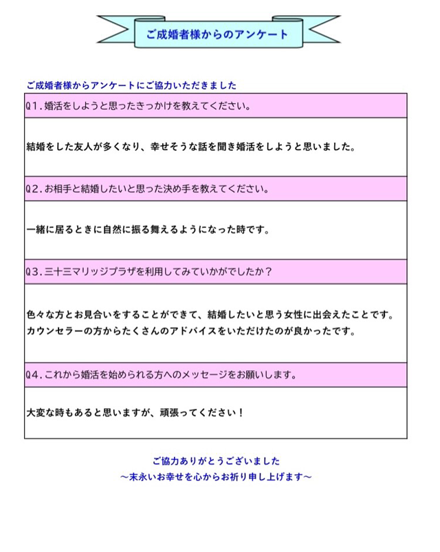 ご成婚おめでとうございます!(30代前半・男性会員さま)