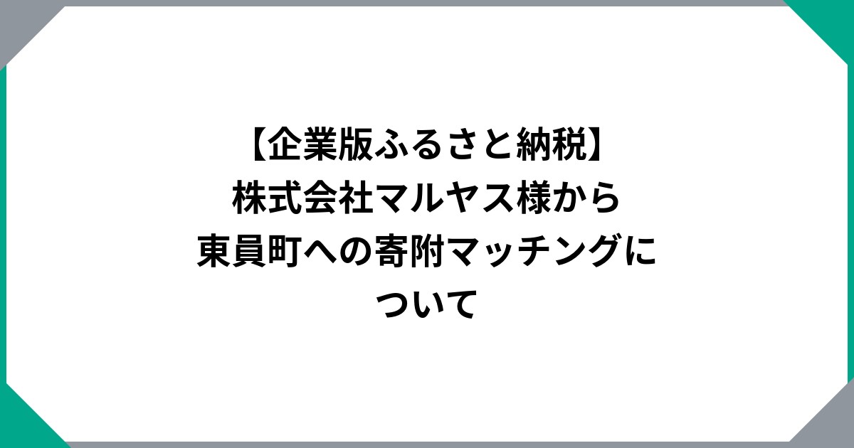 【企業版ふるさと納税】株式会社マルヤス様から東員町への寄附マッチングについて